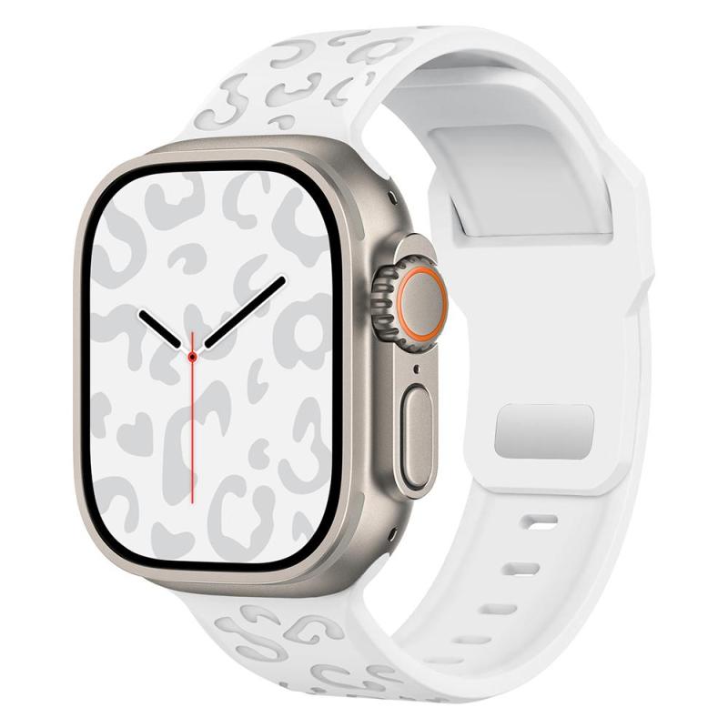 For Apple Watch 46mm / 49mm / 45mm / 44mm Buckle Concave Leopard Silicone Watch Band(White)