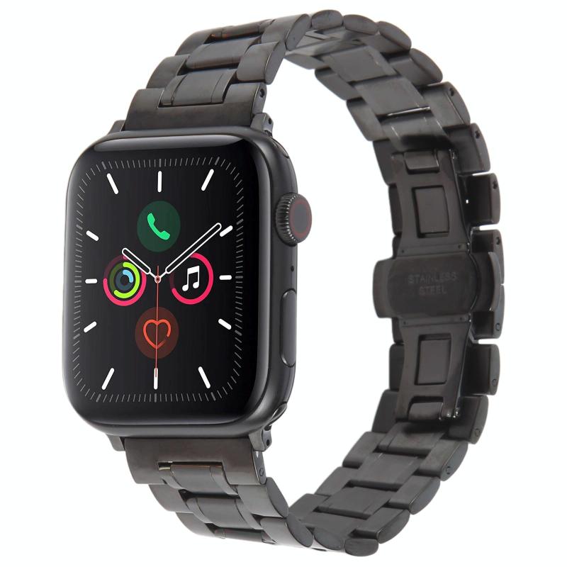 For Apple Watch 46mm / 49mm / 45mm / 44mm Butterfly Buckle New Five Beads Stainless Steel Watch Band(Black)