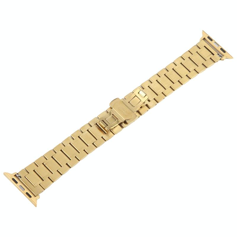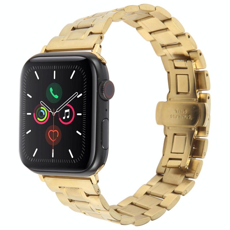 For Apple Watch 46mm / 49mm / 45mm / 44mm Butterfly Buckle New Five Beads Stainless Steel Watch Band(Gold)