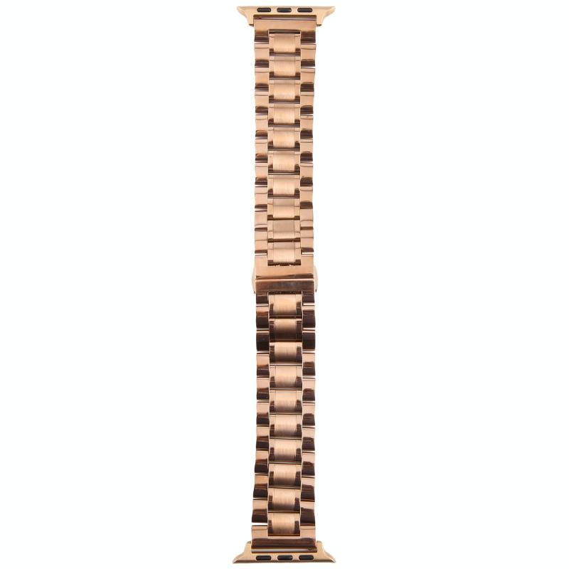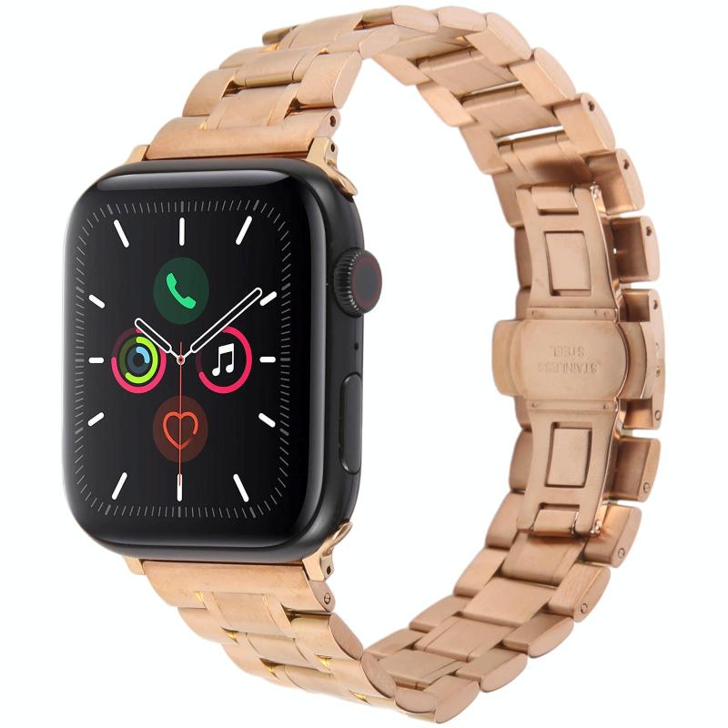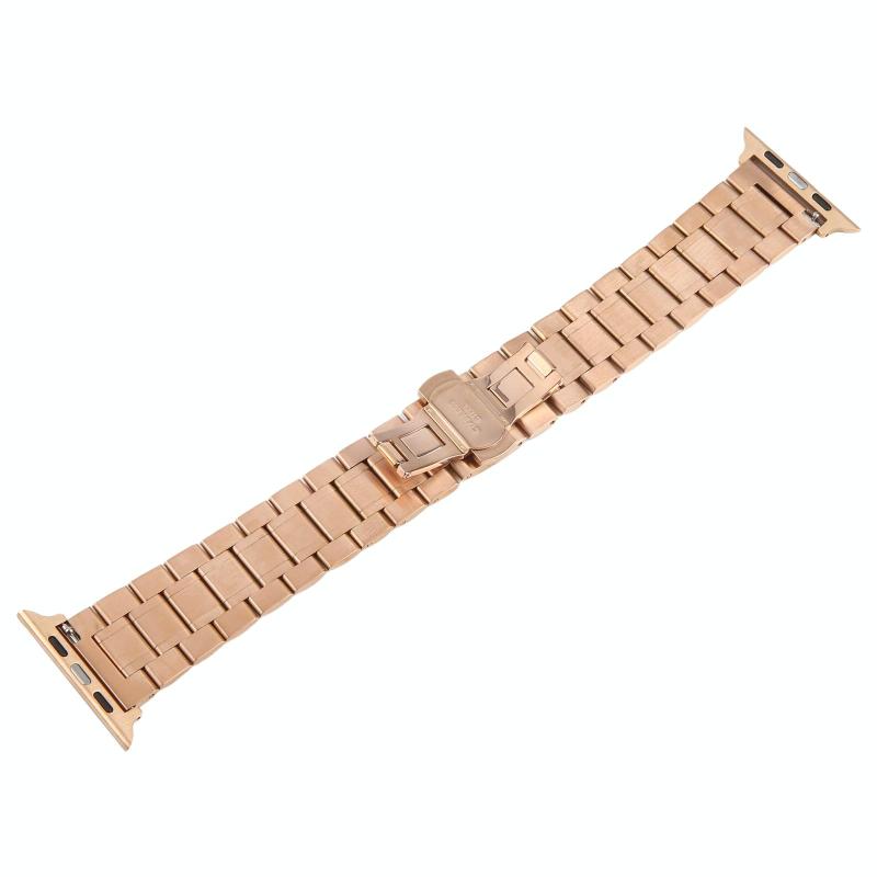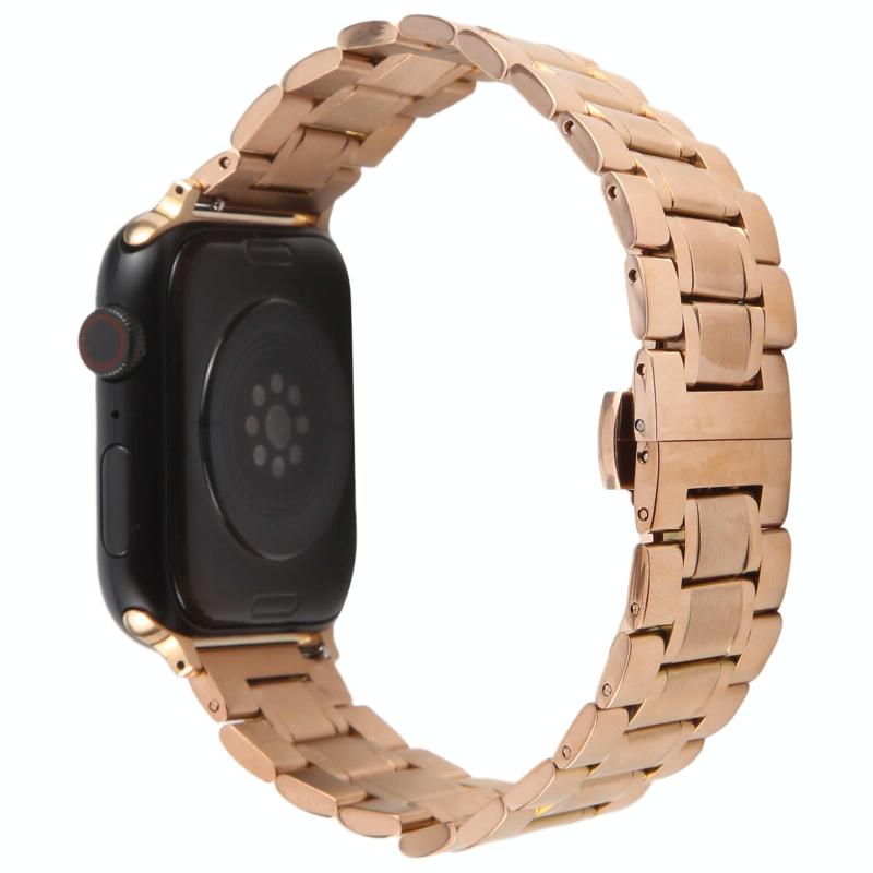 For Apple Watch 46mm / 49mm / 45mm / 44mm Butterfly Buckle New Five Beads Stainless Steel Watch Band(Rose Gold)