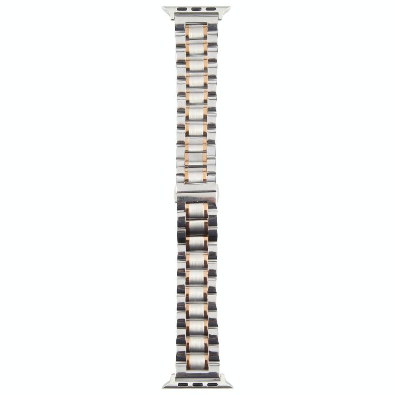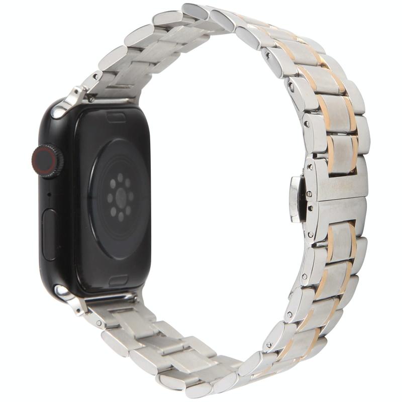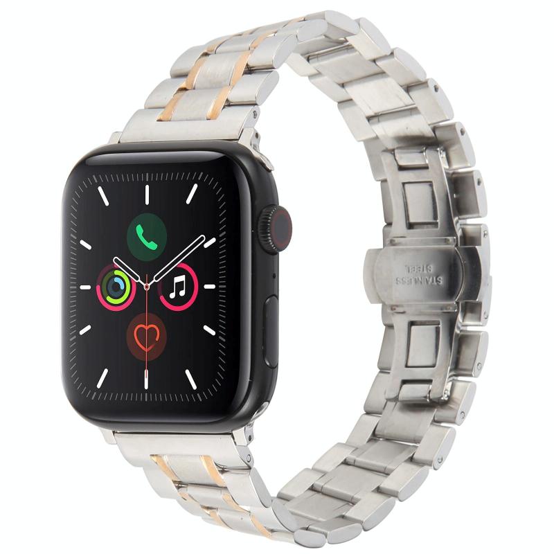 For Apple Watch 46mm / 49mm / 45mm / 44mm Butterfly Buckle New Five Beads Stainless Steel Watch Band(Silver Rose Gold)
