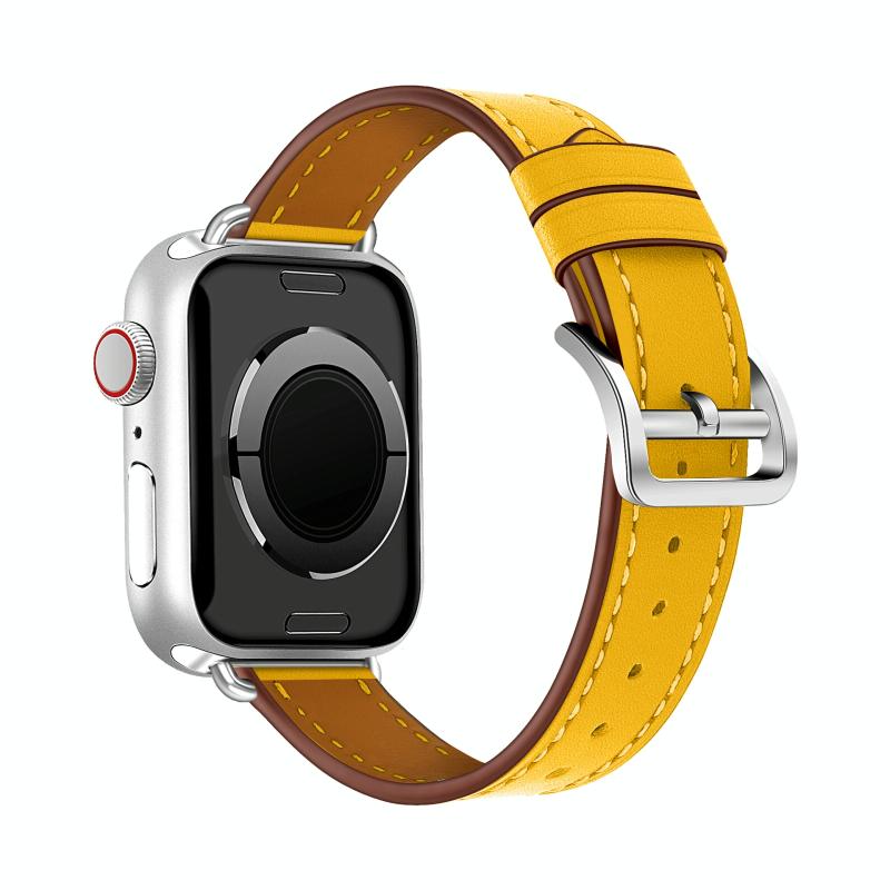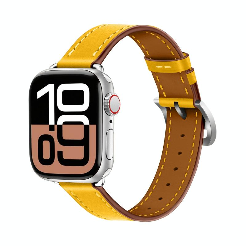 Για Apple Watch 46mm / 49mm / 45mm / 44mm Κλασική Αγκράφα Συνδετήρα Λεπτό Δερμάτινο Λουρί από Αληθινό Δέρμα Αγελίδας (Πορτοκαλί)