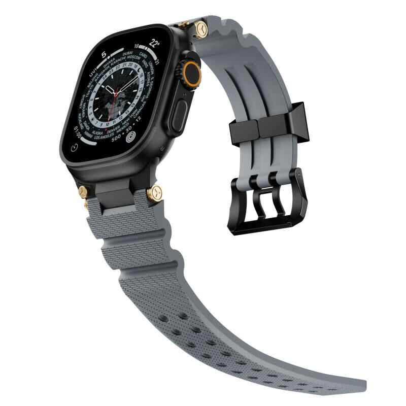 Για Apple Watch 46mm / 49mm / 45mm / 44mm Δροσερό Λουράκι Σιλικόνης για Ρολόι με Διπλή Σειρά Τρυπών (Μαύρο Ασημί)