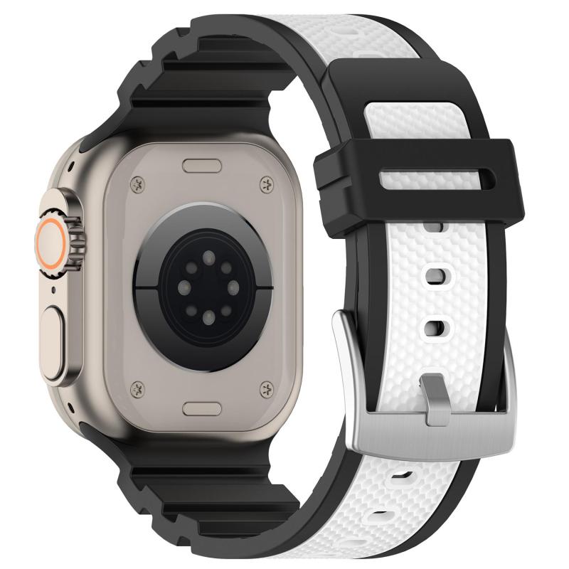 For Apple Watch 46mm / 49mm / 45mm / 44mm Diamond Texture Two-Color Silicone Watch Band(Black White)