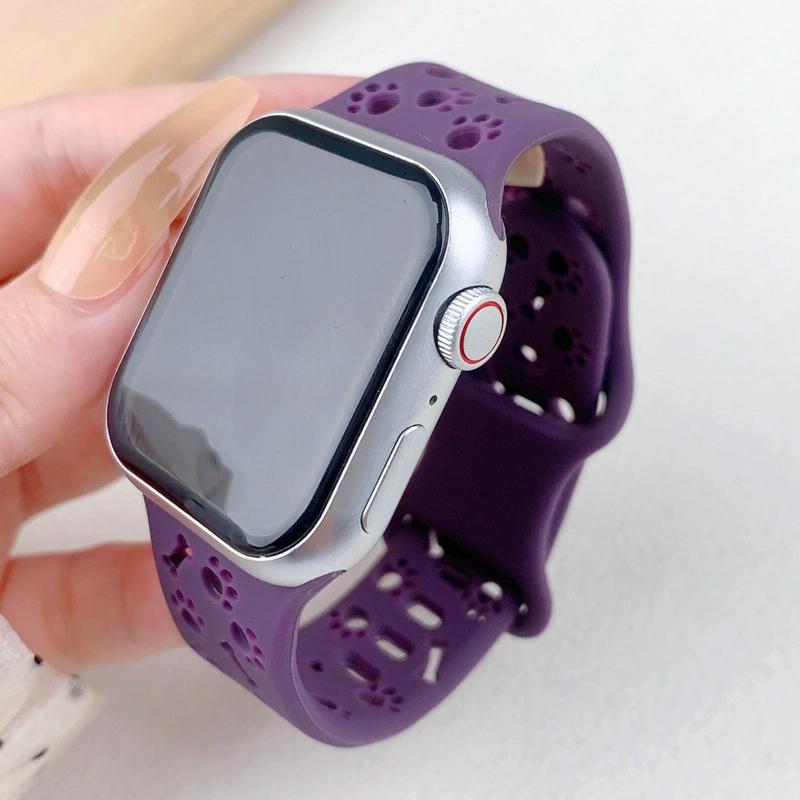 For Apple Watch 46mm / 49mm / 45mm / 44mm Dog Paw Bones Butterfly Buckle Silicone Watch Band(Dark Purple)