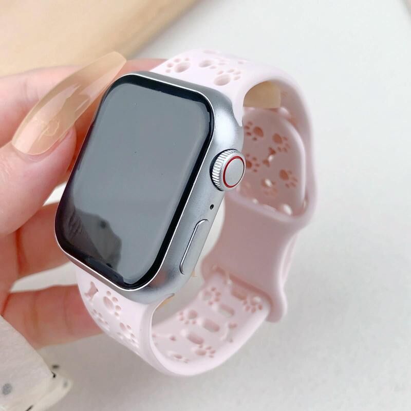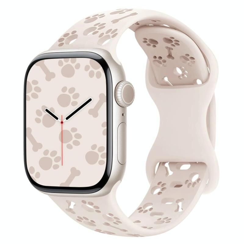 Για Apple Watch 46mm / 49mm / 45mm / 44mm Λουρί Σιλικόνης με Αγκράφα Πεταλούδας και Σχέδιο Πατούσας Σκύλου (Λευκό)