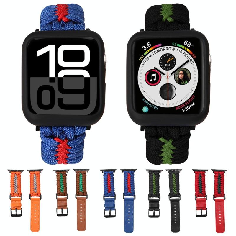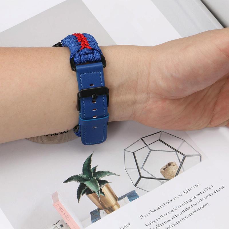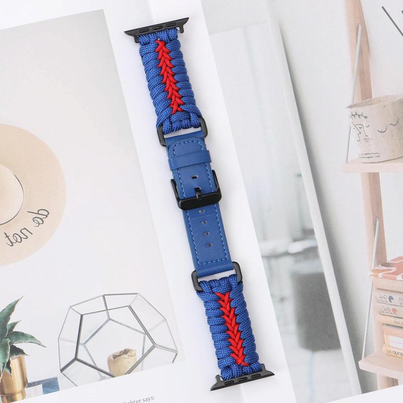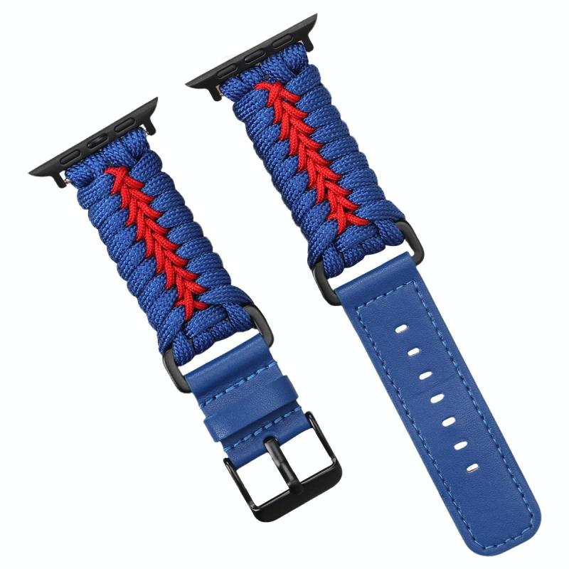 Για Apple Watch 46mm / 49mm / 45mm / 44mm Δερμάτινη Αγκράφα Διπλού Κουμπώματος, Λουρί Παρακορδίου Νάιλον (Μπλε)