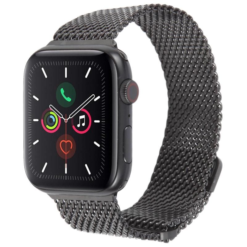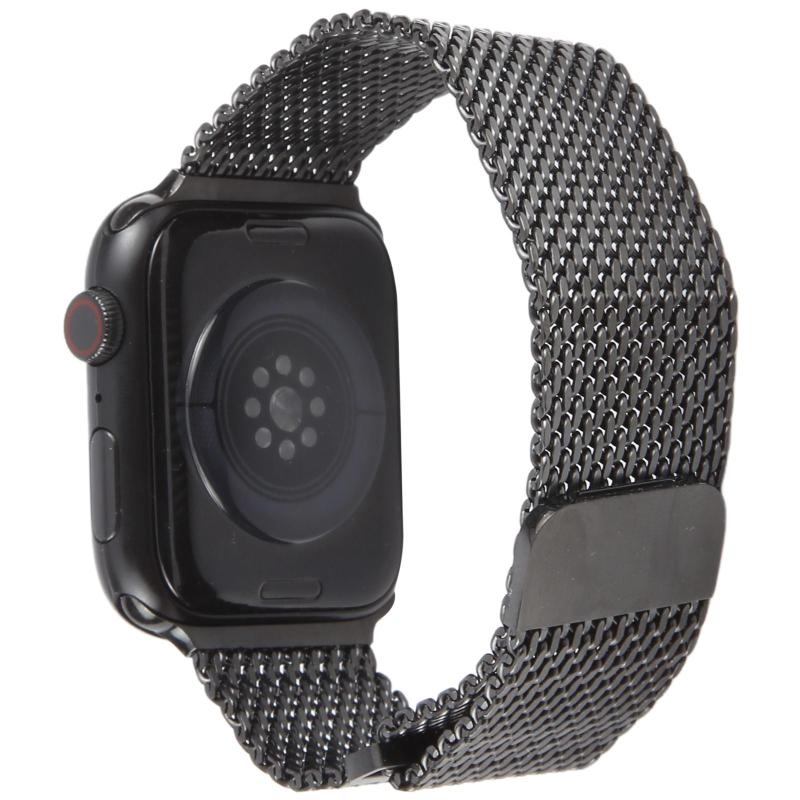 For Apple Watch 46mm / 49mm / 45mm / 44mm Double-section Magnetic Milanese Steel Watch Band(Black)