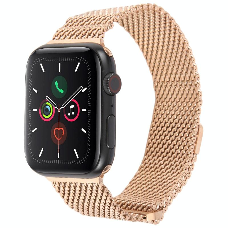 For Apple Watch 46mm / 49mm / 45mm / 44mm Double-section Magnetic Milanese Steel Watch Band(Rose Gold)