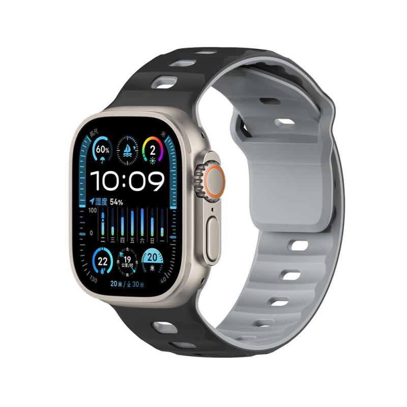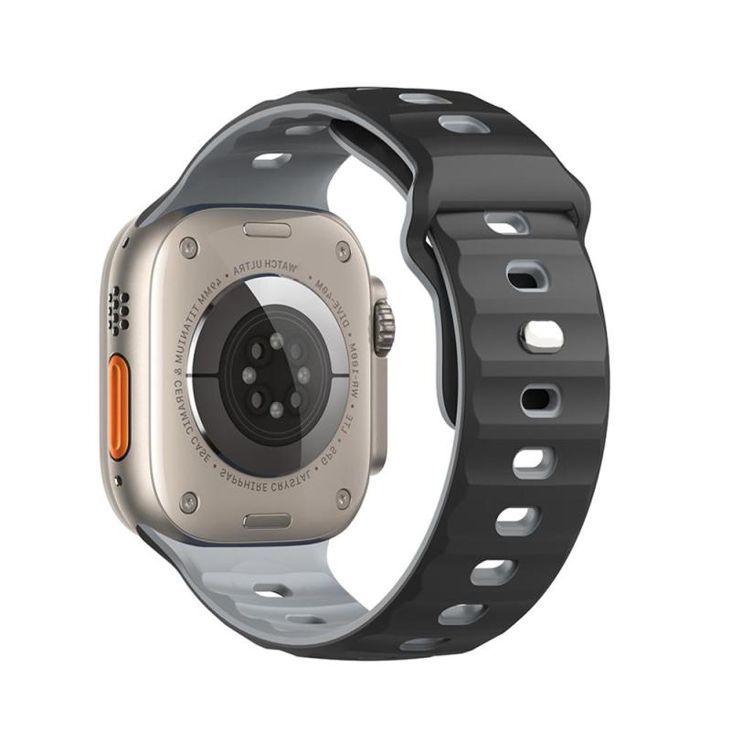 Λουράκι ρολογιού σιλικόνης διχρωμίας Mecha Armor για Apple Watch 46mm / 49mm / 45mm / 44mm (Μαύρο Γκρι)