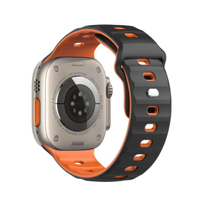 Λουράκι ρολογιού σιλικόνης διχρωμίας Mecha Armor για Apple Watch 46mm / 49mm / 45mm / 44mm (Μαύρο Πορτοκαλί)