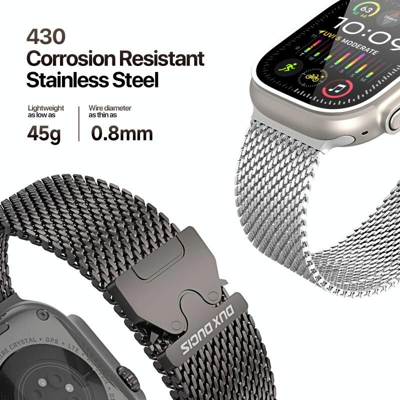 For Apple Watch 46mm / 49mm / 45mm / 44mm DUX DUCIS Milanese Air Series Stainless Steel Magnetic Watch Strap(Gun Grey) (DUX DUCIS)