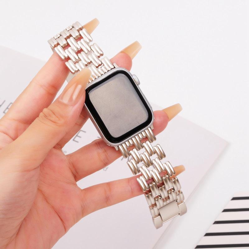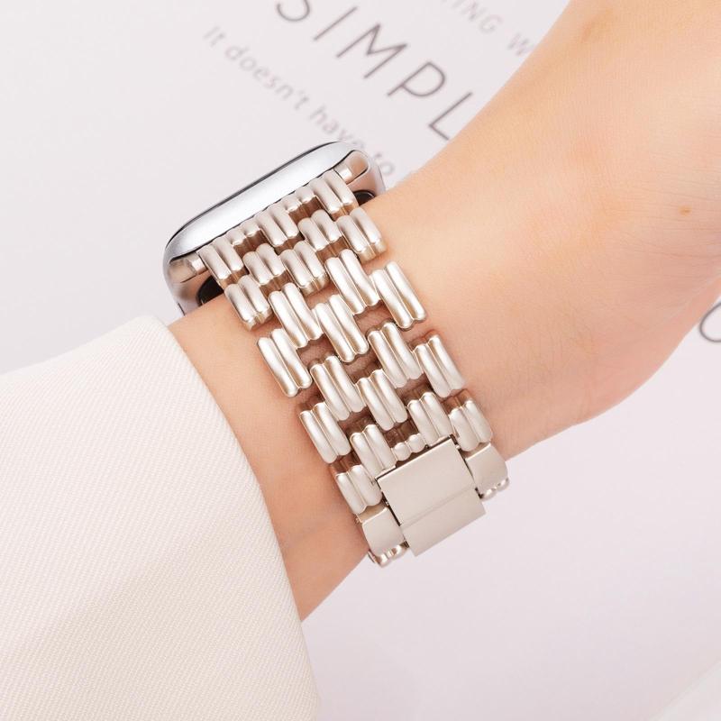 For Apple Watch 46mm / 49mm / 45mm / 44mm Five-bead Stripe Stainless Steel Watch Band(Starlight)