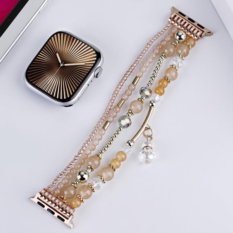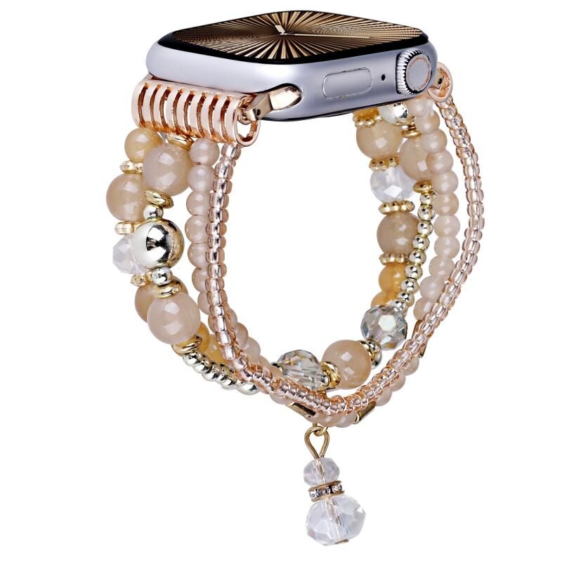 For Apple Watch 46mm / 49mm / 45mm / 44mm Four-row Copper Beads Chain Watch Band(Apricot)
