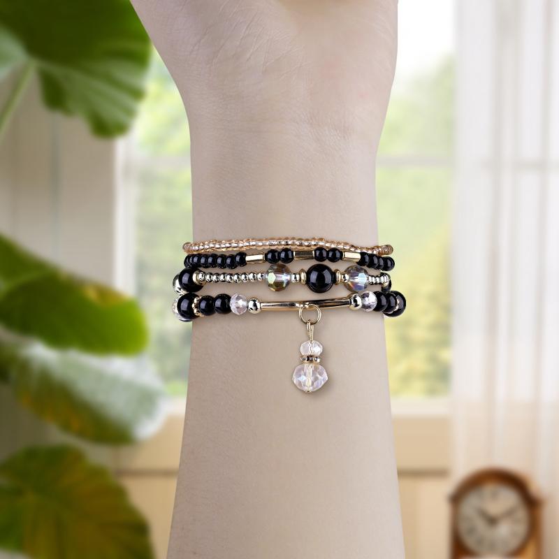 For Apple Watch 46mm / 49mm / 45mm / 44mm Four-row Copper Beads Chain Watch Band(Black)