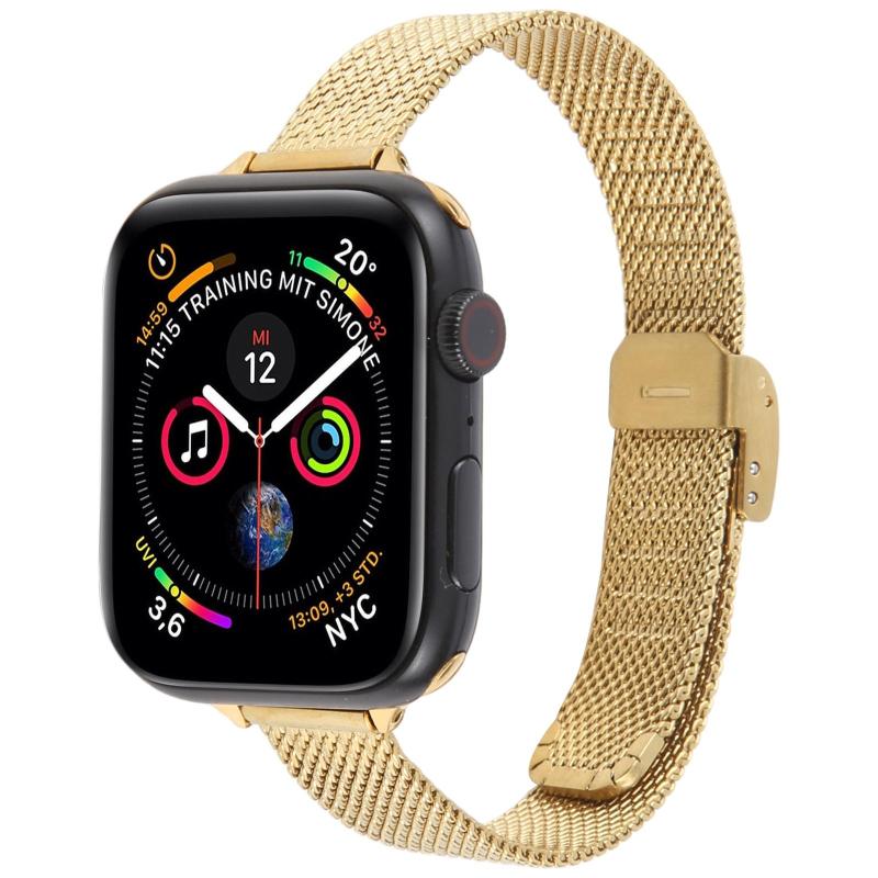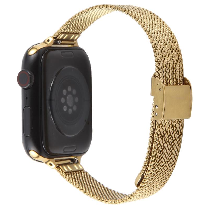 For Apple Watch 46mm / 49mm / 45mm / 44mm Integrated Buckle Embossed Slim Milanese Metal Watch Band(Gold)