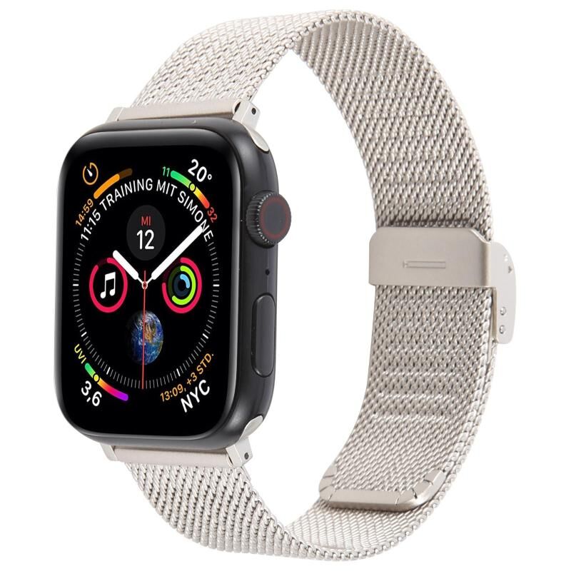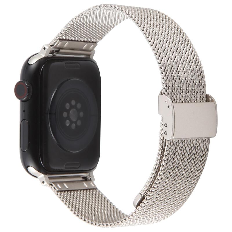 For Apple Watch 46mm / 49mm / 45mm / 44mm Integrated Buckle Embossed Thick Milanese Metal Watch Band(Starlight)