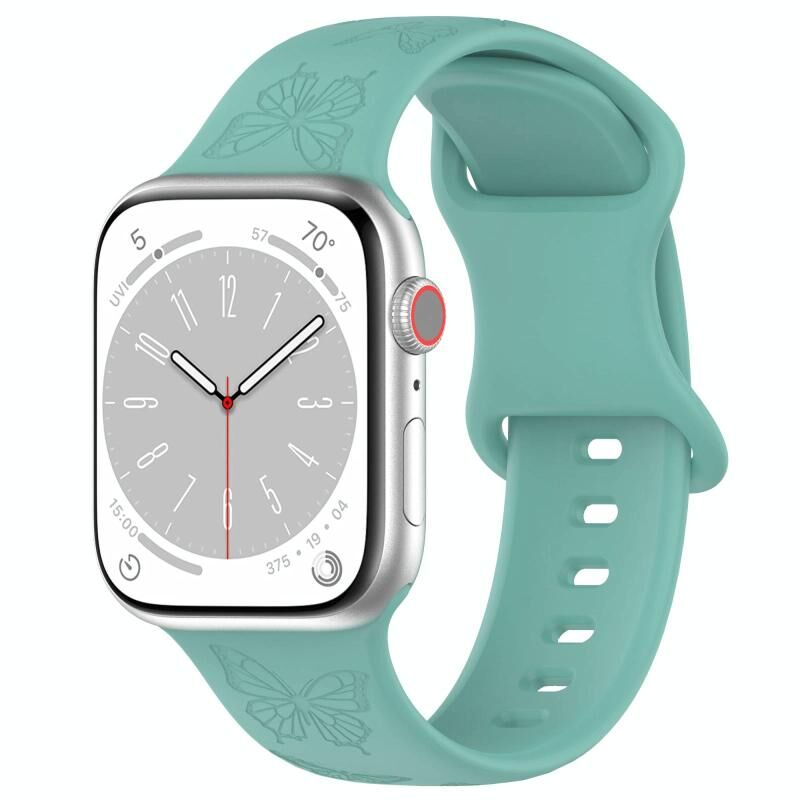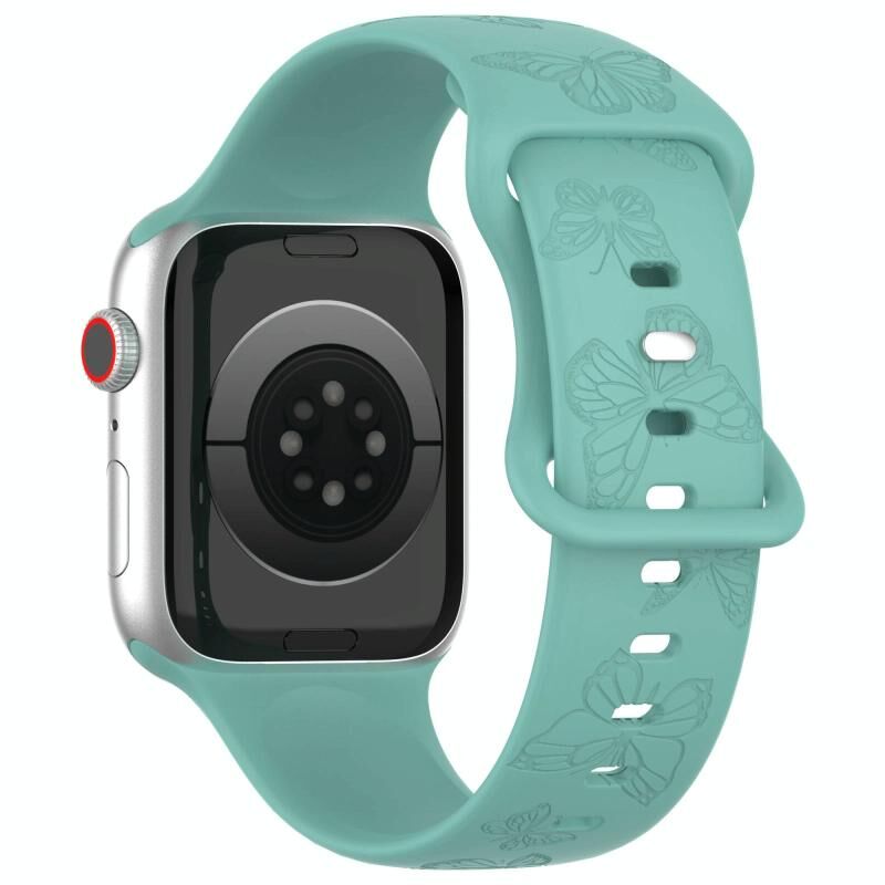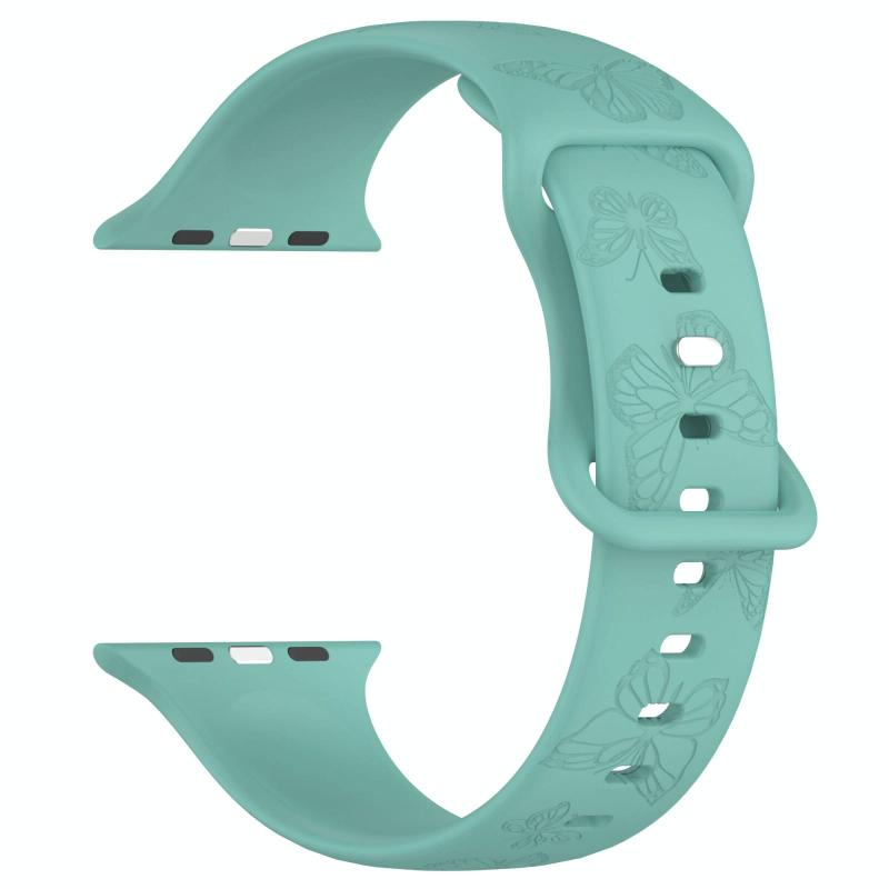 For Apple Watch 46mm / 49mm / 45mm / 44mm Kalebol 8-shaped Buckle Butterfly Embossed Silicone Watch Band(Cactus Green) (Kalebol)