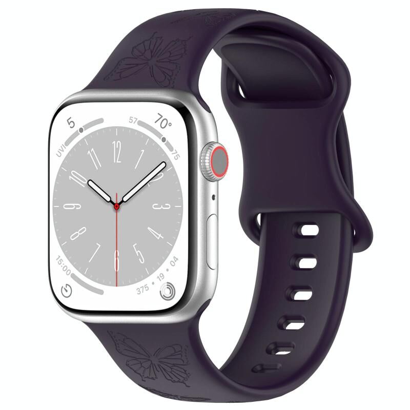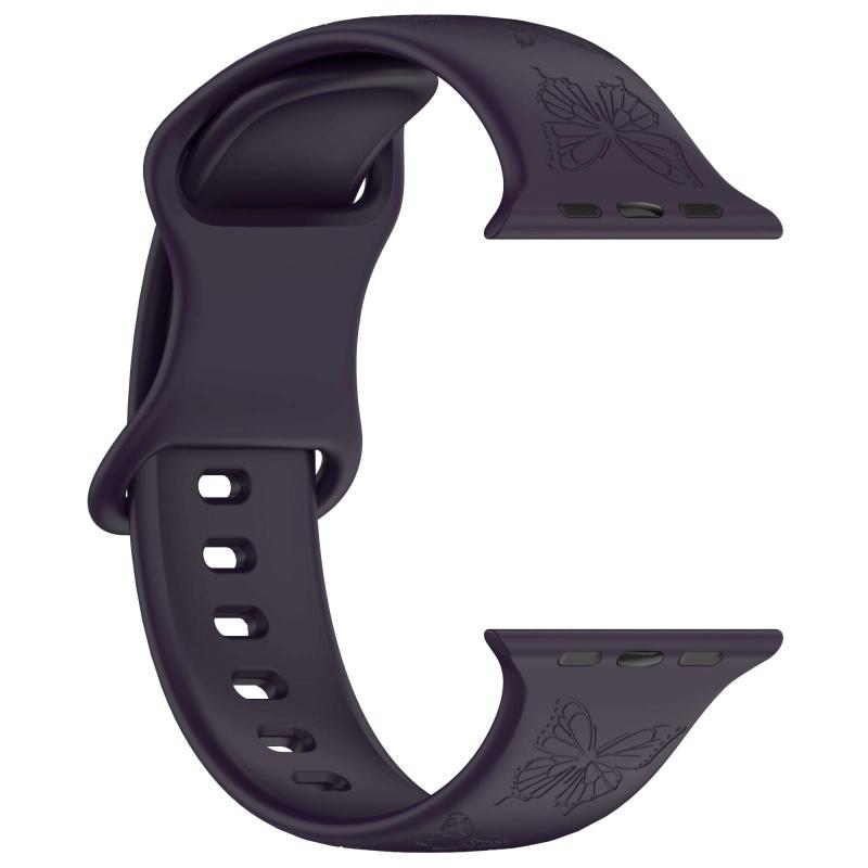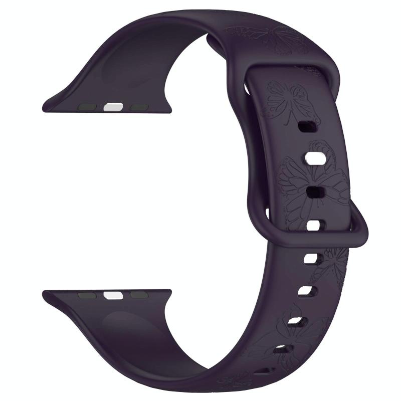 For Apple Watch 46mm / 49mm / 45mm / 44mm Kalebol 8-shaped Buckle Butterfly Embossed Silicone Watch Band(Dark Purple) (Kalebol)