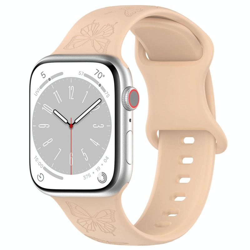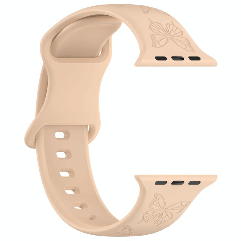 Για Apple Watch 46mm / 49mm / 45mm / 44mm Λουράκι ρολογιού σιλικόνης Kalebol με αγκράφα σε σχήμα 8 και ανάγλυφο σχέδιο πεταλούδας (Milk Tea) (Kalebol)