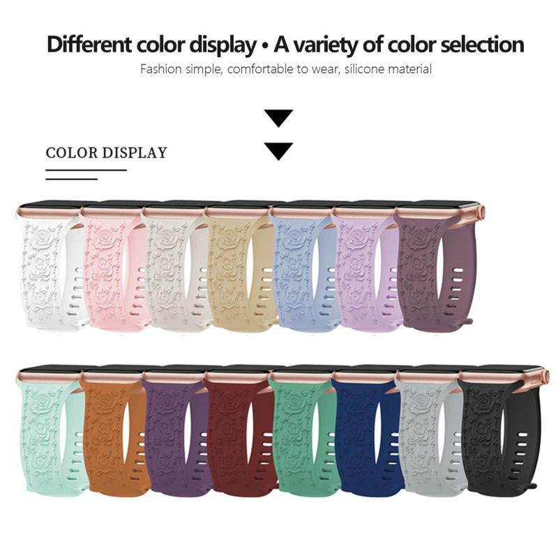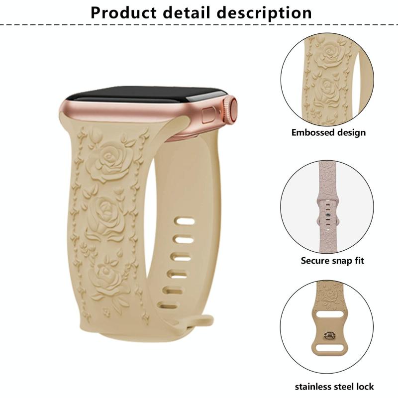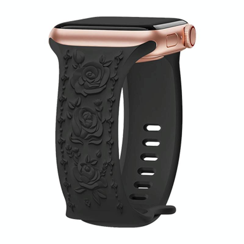 Για Apple Watch 46mm / 49mm / 45mm / 44mm Λουράκι ρολογιού σιλικόνης Kalebol με αγκράφα σε σχήμα 8 και ανάγλυφο σχέδιο τριαντάφυλλου (Ροζ Άμμος) (Μαύρο)