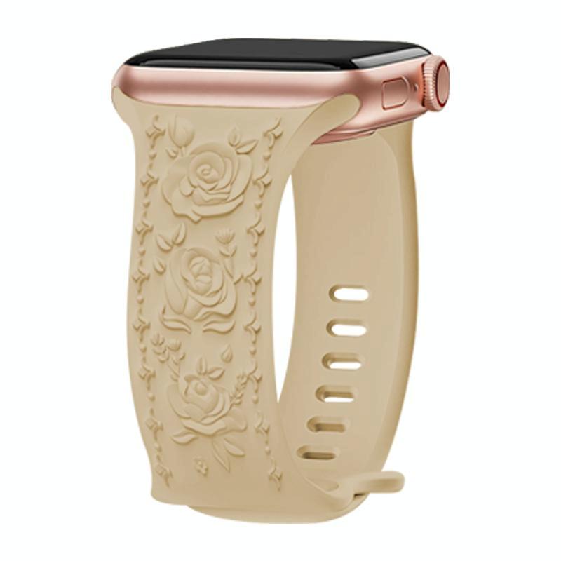 For Apple Watch 46mm / 49mm / 45mm / 44mm Kalebol 8-shaped Buckle Rose Embossed Silicone Watch Band(Milk Tea) (Kalebol)