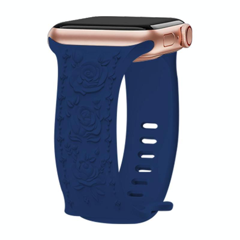 For Apple Watch 46mm / 49mm / 45mm / 44mm Kalebol 8-shaped Buckle Rose Embossed Silicone Watch Band(Navy Blue) (Kalebol)