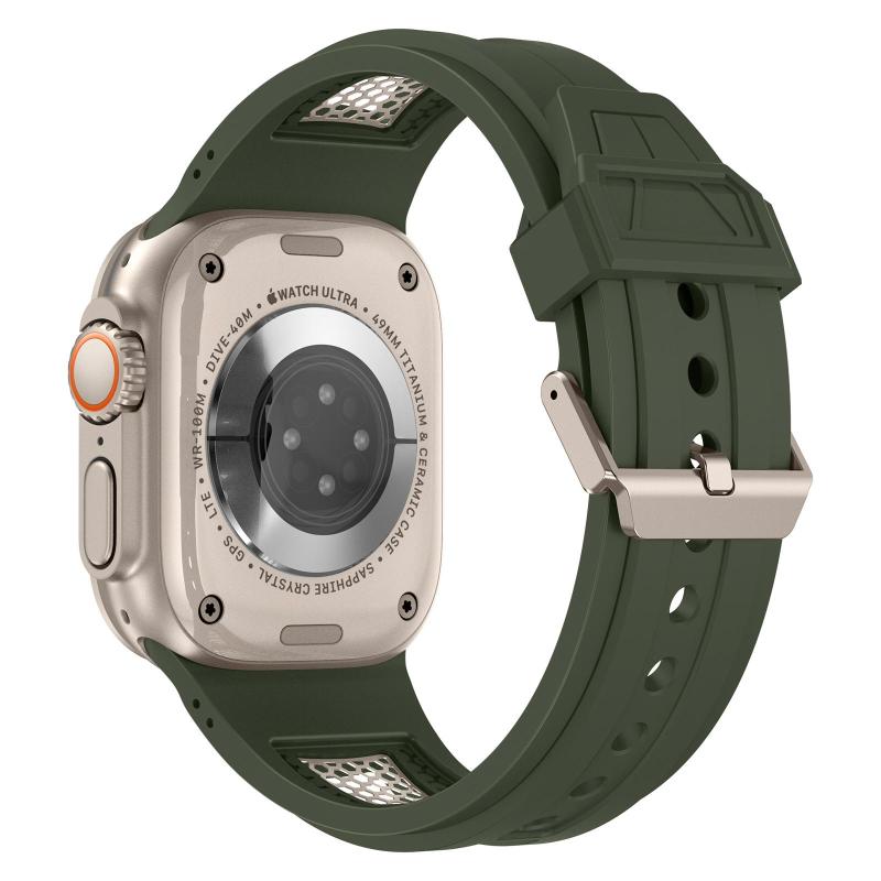 For Apple Watch 46mm / 49mm / 45mm / 44mm Kalebol Honeycomb TPU Titanium Mesh Strap(Army Green Titanium Net) (Kalebol)