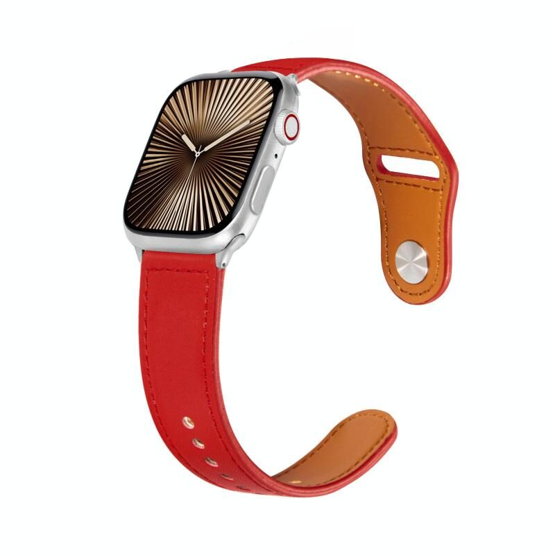 For Apple Watch 46mm / 49mm / 45mm / 44mm Kalebol Large Stud Buckle Leather Watch Band(Red) (Kalebol)