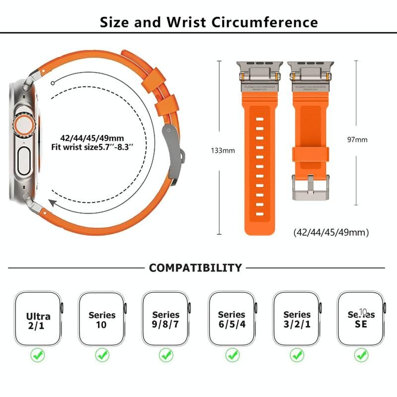 Compatible with Models:46mm / 49mm / 45mm / 44mm Watch Band Compatible with Apple Watch Series 10 46mm, Watch Ultra 2 49mm, Watch Ultra 49mm, Watch Series 9 45mm, Watch Series 8 45mm, Watch SE 2023 44mm, Watch SE 2022 44mm, Watch SE 44mm, Watch Series 6 44mm, Watch Series 5 44mm, Watch Series 4 44mm, Watch Series 3 42mm, Watch Series 2 42mm, Watch 42mm