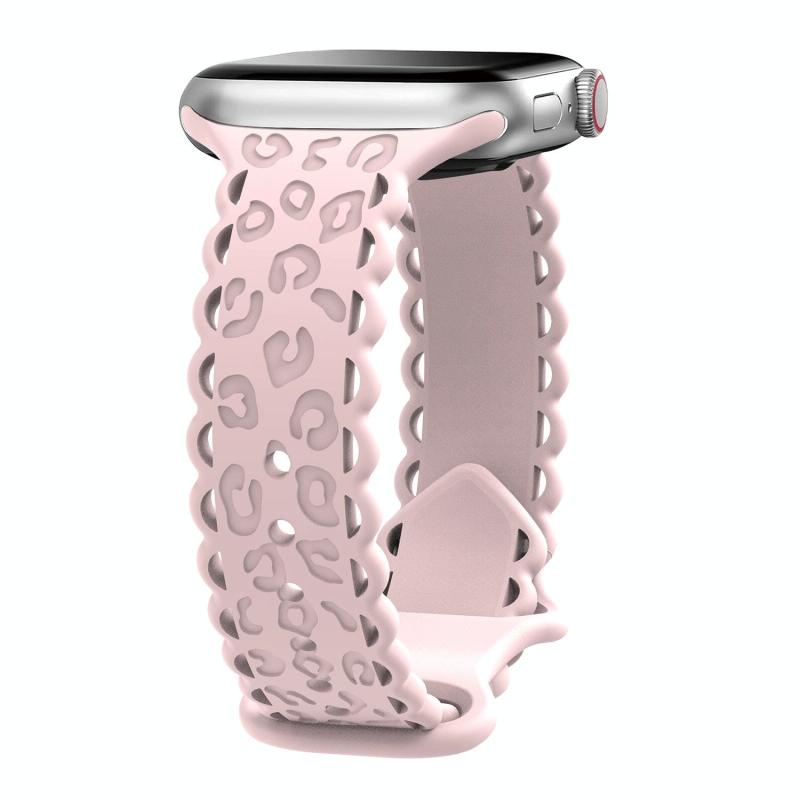 For Apple Watch 46mm / 49mm / 45mm / 44mm Lace Laser Engraved Leopard Silicone Watch Band(Pink Sand)