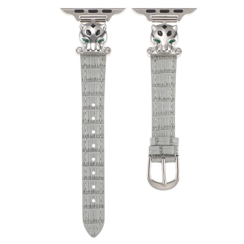 Λουράκι ρολογιού για Apple Watch 46mm / 49mm / 45mm / 44mm με κεφαλή λεοπάρδαλης, υφή μπαμπού, δερμάτινο (Ροζ Χρυσό Καφέ)