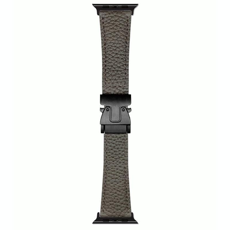 For Apple Watch 46mm / 49mm / 45mm / 44mm Magnetic Parachute Buckle Litchi Genuine Leather Watch Band(Grey)