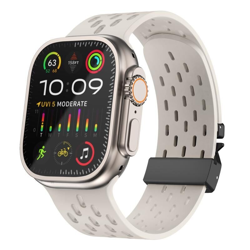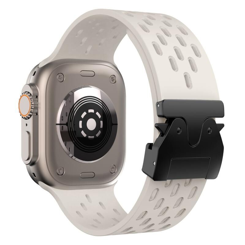 For Apple Watch 46mm / 49mm / 45mm / 44mm Mesh Silicone Buckle Watch Band(Starlight)