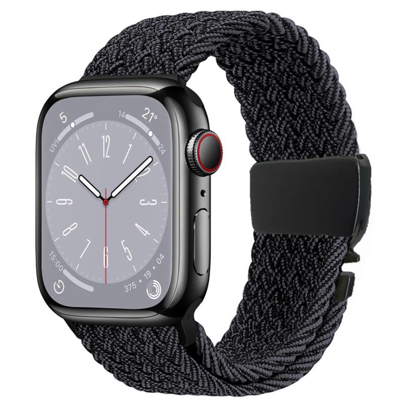 For Apple Watch 46mm / 49mm / 45mm / 44mm Metal Buckle Nylon Braided Watch Band(Graphite)