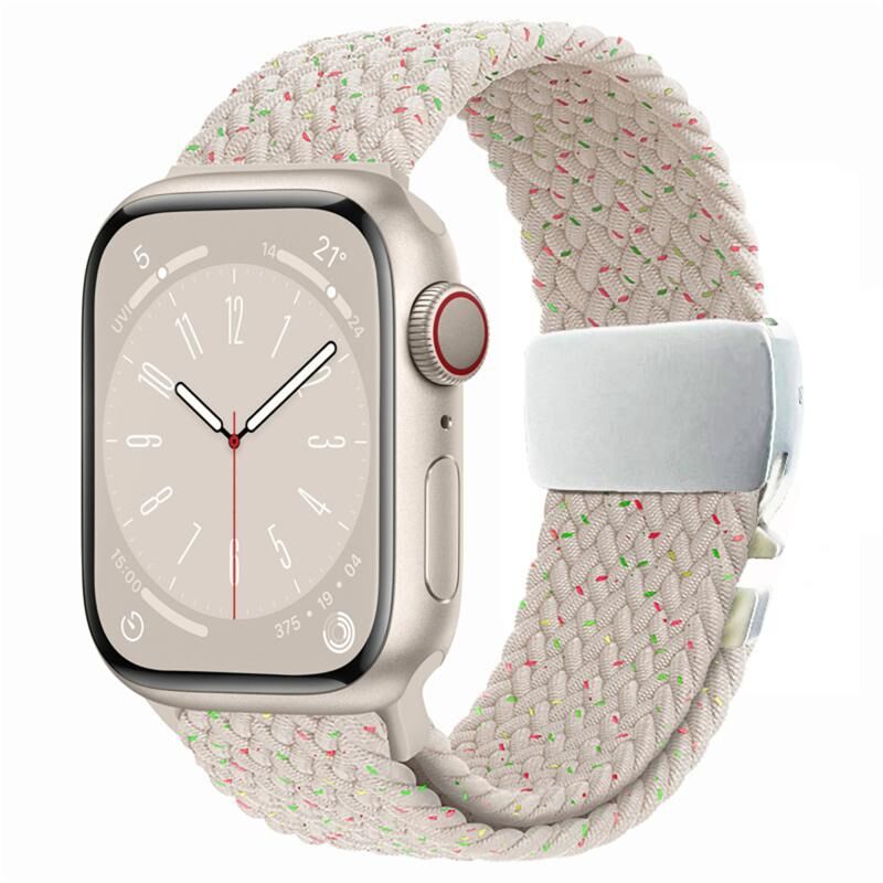 For Apple Watch 46mm / 49mm / 45mm / 44mm Metal Buckle Nylon Braided Watch Band(Starlight Color)