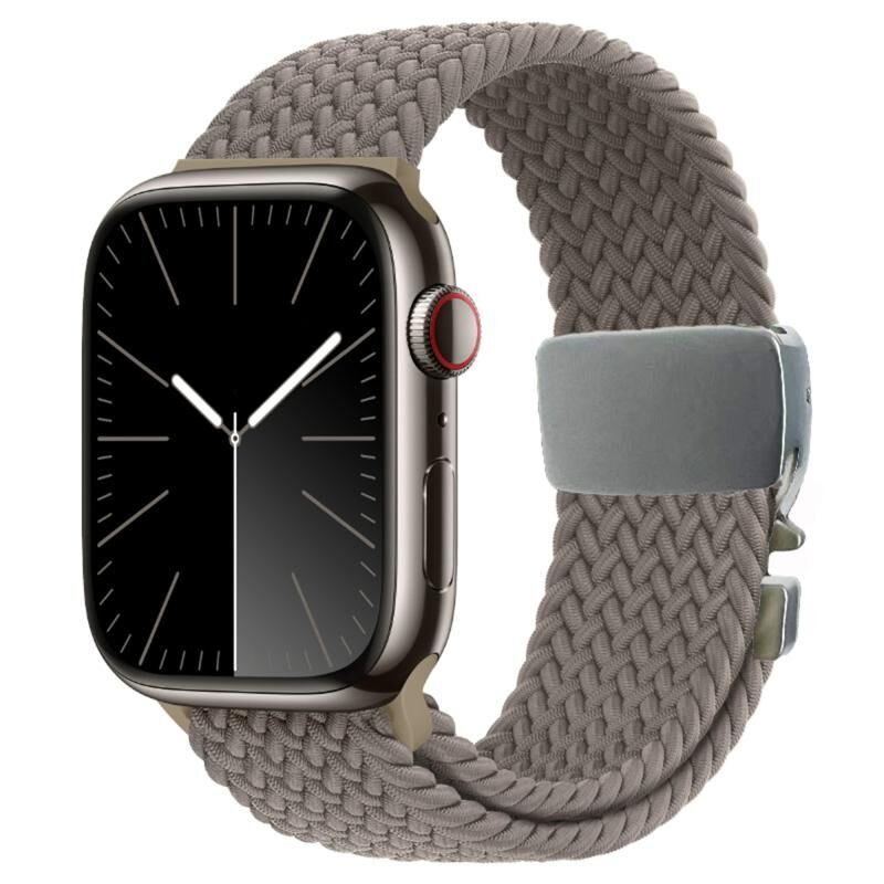 For Apple Watch 46mm / 49mm / 45mm / 44mm Metal Buckle Nylon Braided Watch Band(Taupe)