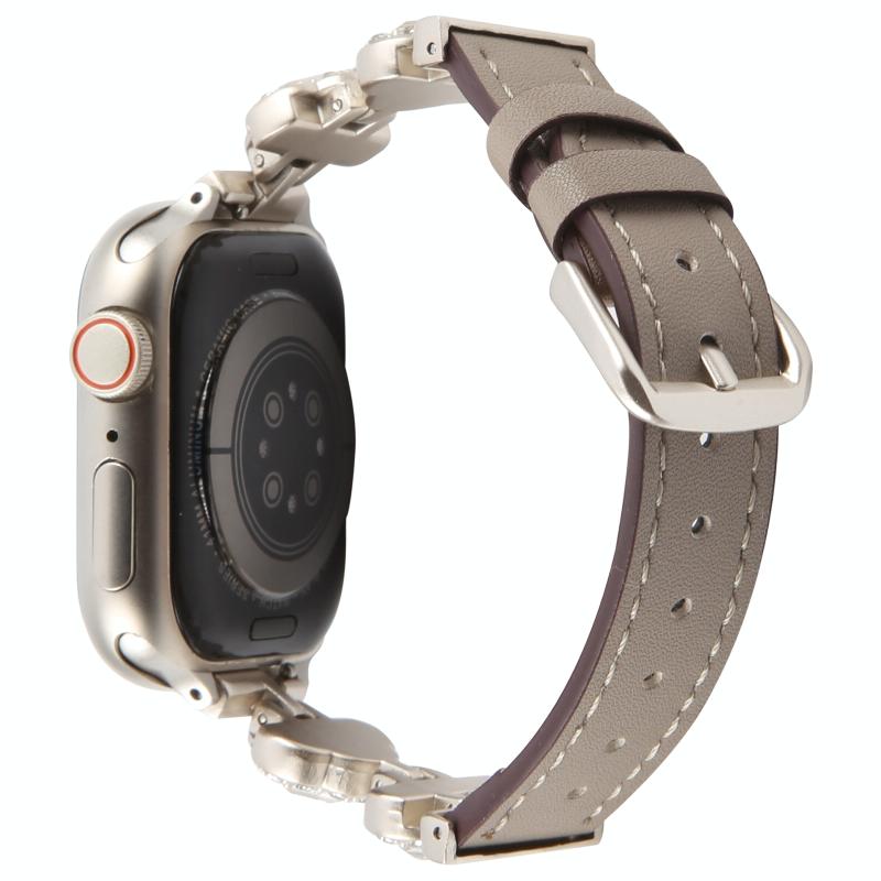 Λουρί ρολογιού Apple Watch 46mm / 49mm / 45mm / 44mm από μικροΐνες δέρματος με λεπτό σχέδιο διαμαντιού (Γκρι)