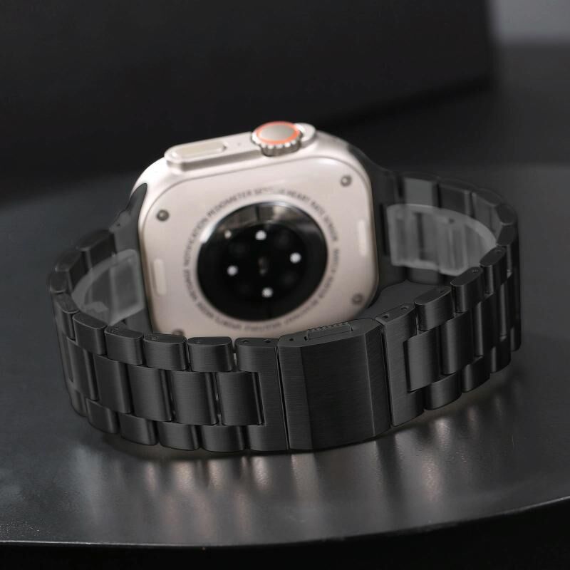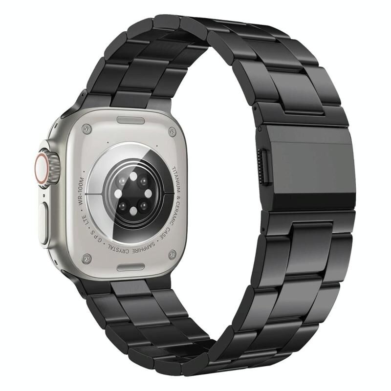 Για Apple Watch 46mm / 49mm / 45mm / 44mm, Τριπλό Μπρασελέ Τιτανίου με Κούμπωμα Norman (Μαύρο)