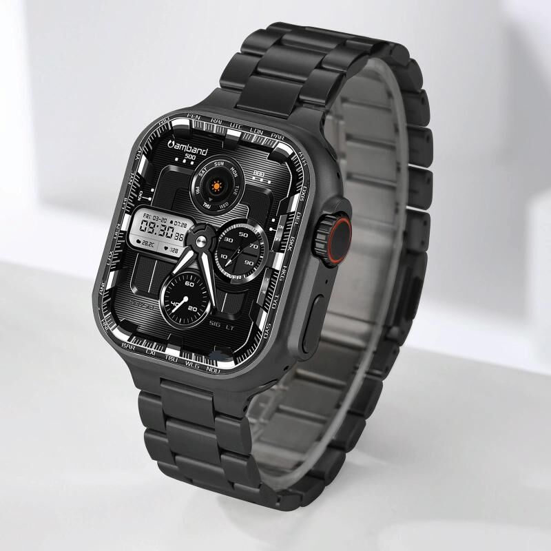 4. Κομψός και μοντέρνος σχεδιασμός: Η φινίρισμα από κράμα τιτανίου χαρίζει στο λουρί μια εξελιγμένη, μοντέρνα εμφάνιση, προσθέτοντας μια πινελιά κομψότητας στο ρολόι σας.