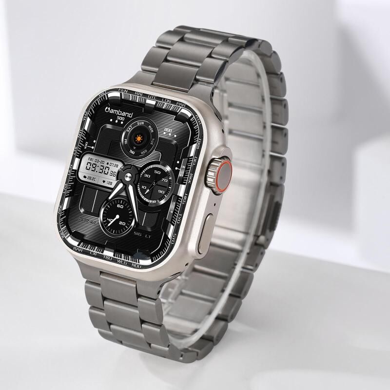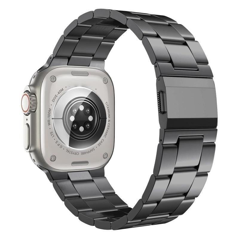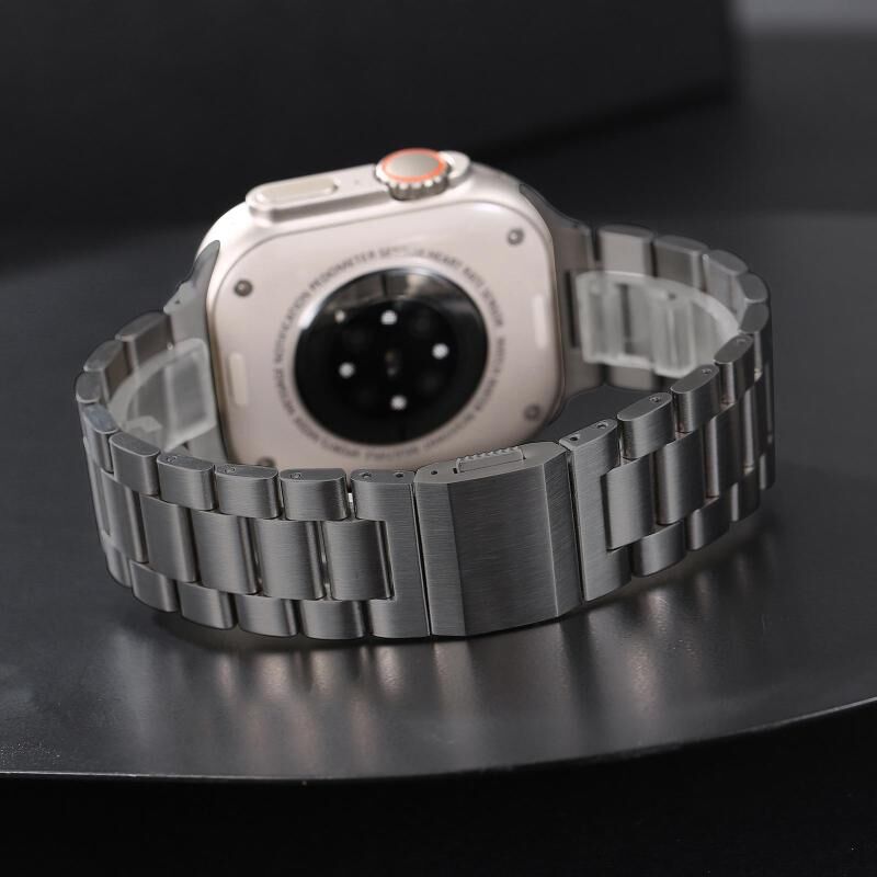 4. Κομψός και μοντέρνος σχεδιασμός: Η φινίρισμα από κράμα τιτανίου χαρίζει στο λουρί μια εξελιγμένη, μοντέρνα εμφάνιση, προσθέτοντας μια πινελιά κομψότητας στο ρολόι σας.