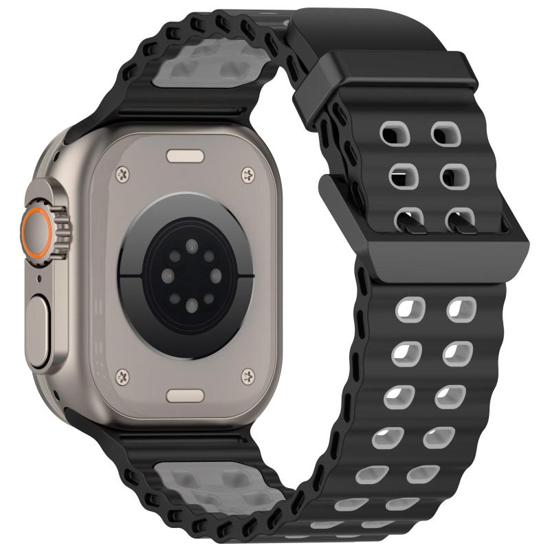 Για Apple Watch 46mm / 49mm / 45mm / 44mm, Διπλή σειρά τρυπών, Διχρωμικό λουράκι σιλικόνης για ρολόι (Μαύρο Γκρι)