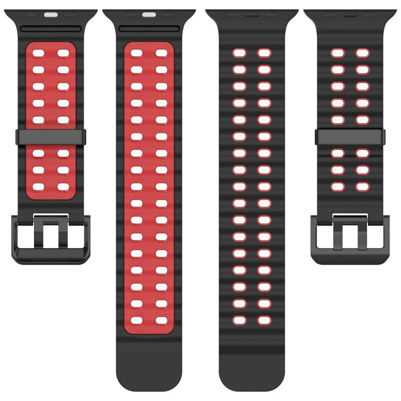 Για Apple Watch 46mm / 49mm / 45mm / 44mm, Διπλή σειρά τρυπών, Διχρωμικό λουράκι σιλικόνης για ρολόι (Μαύρο Κόκκινο)