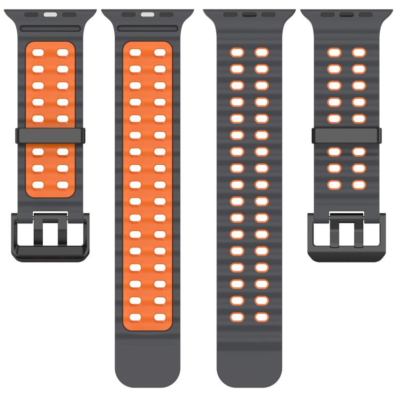 Για Apple Watch 46mm / 49mm / 45mm / 44mm, Διπλή σειρά τρυπών, Διχρωμικό λουράκι σιλικόνης για ρολόι (Γκρι Πορτοκαλί)