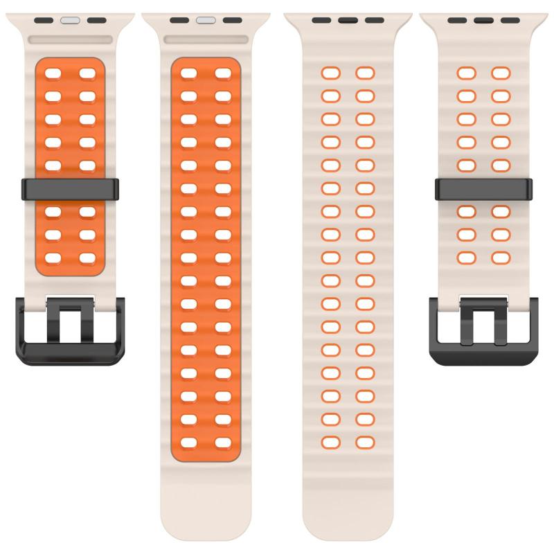 Για Apple Watch 46mm / 49mm / 45mm / 44mm, Διπλή σειρά τρυπών, Διχρωμικό λουράκι σιλικόνης για ρολόι (Πορτοκαλί Αστερόφωτο)