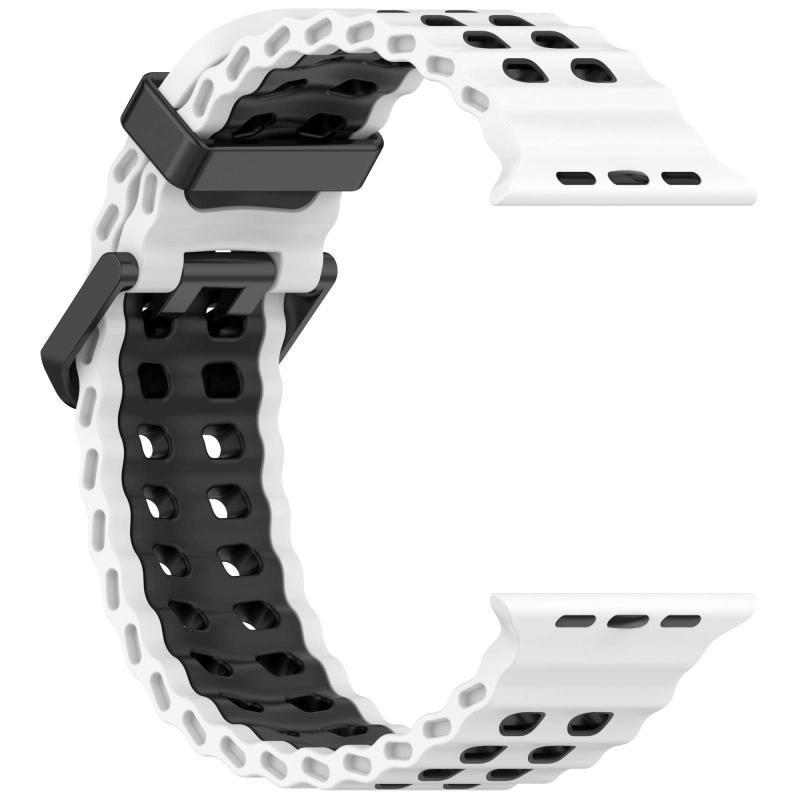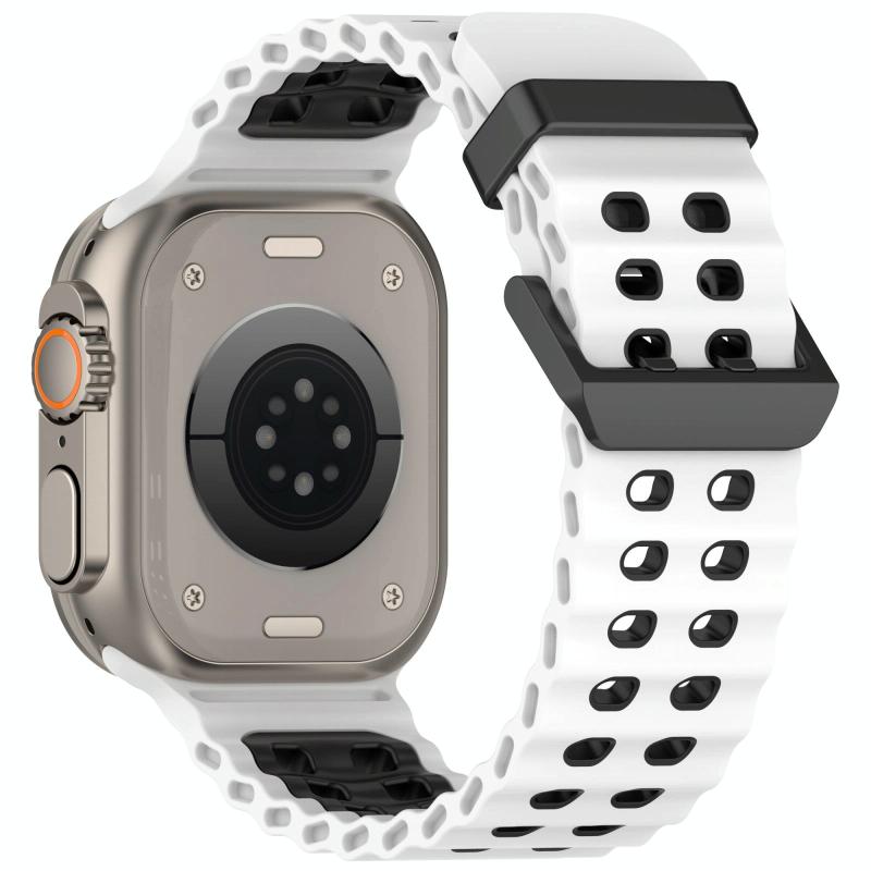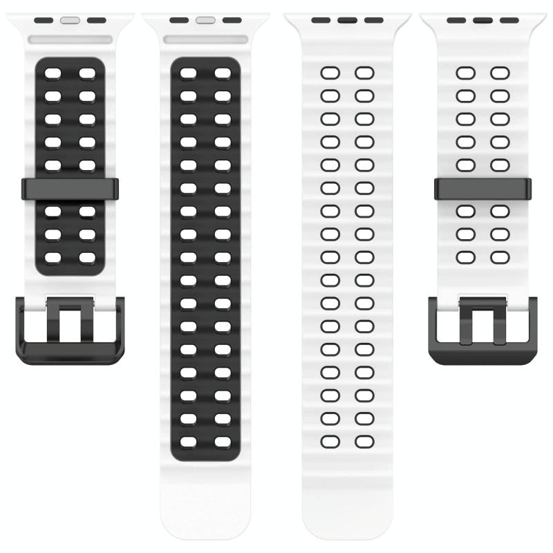 Για Apple Watch 46mm / 49mm / 45mm / 44mm, Διπλή σειρά τρυπών, Διχρωμικό λουράκι σιλικόνης για ρολόι (Λευκό Μαύρο)