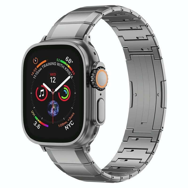 For Apple Watch 46mm / 49mm / 45mm / 44mm One-Bead Pure Titanium Buckle Watch Band(Grey)