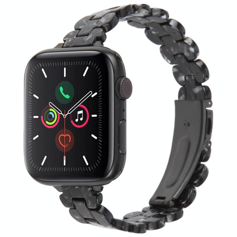 For Apple Watch 46mm / 49mm / 45mm / 44mm Oval Resin Watch Band(Flash Black)