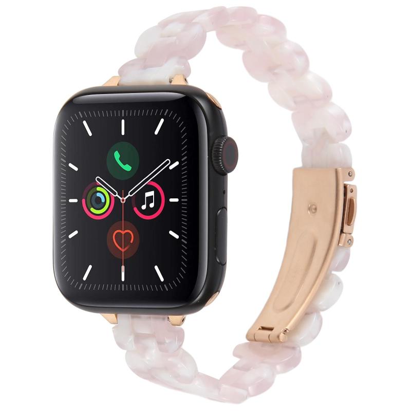 For Apple Watch 46mm / 49mm / 45mm / 44mm Oval Resin Watch Band(Pink Flower)