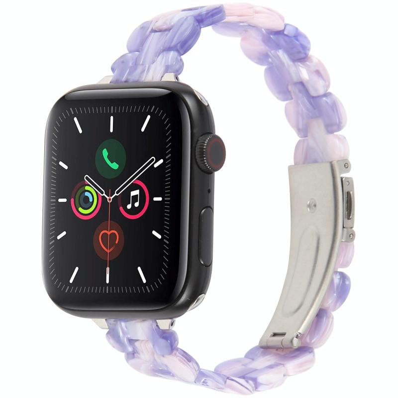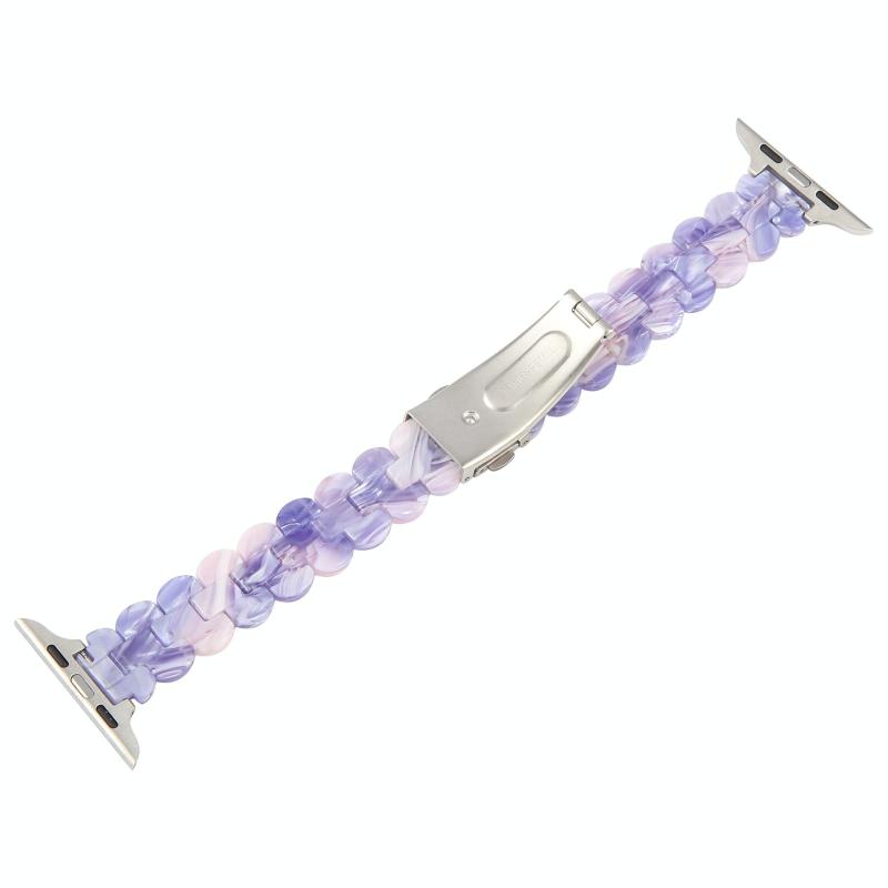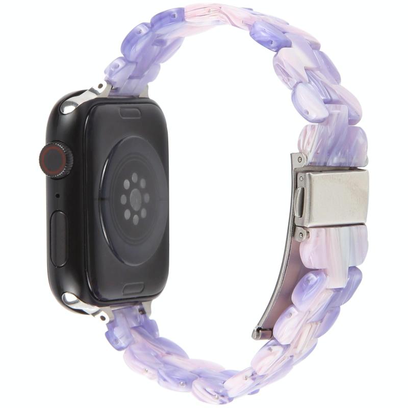 For Apple Watch 46mm / 49mm / 45mm / 44mm Oval Resin Watch Band(Purple Pink Flower)